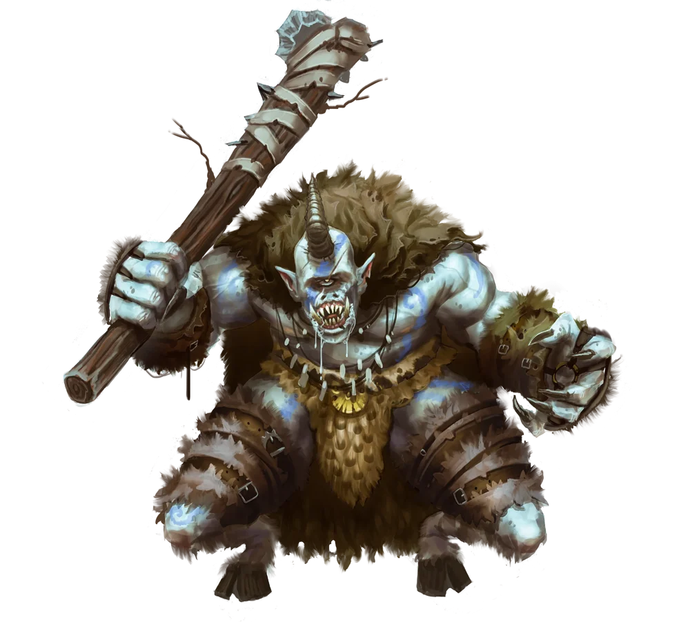 The cyclopes are violent giants with a tragic past. Although they possess only one eye, they could once see far more than most, possessing occult wisdom and divinatory magic that gave them the mystic ability of foresight. But their legendary oracular powers failed to prevent the fall of their society, and the vast kingdoms of the cyclops long ago collapsed into ruin. Today, cyclopes have forgotten much of what they once knew, and they skulk among the crumbling remains of their fallen cities like forgotten kings and queens of their own fallen kingdoms.