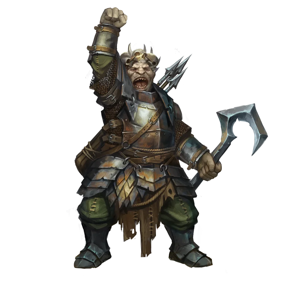 In ogre society, might makes more than right—it makes the rules. The strongest or most violent ogre in a family (in most cases, this is the same ogre) is invariably that family's boss. Quick to hook fallen foes on their weapons, even other ogres fear the repercussions of displeasing an ogre boss. When an ogre boss barks out commands, the other members of the family move quickly to obey.