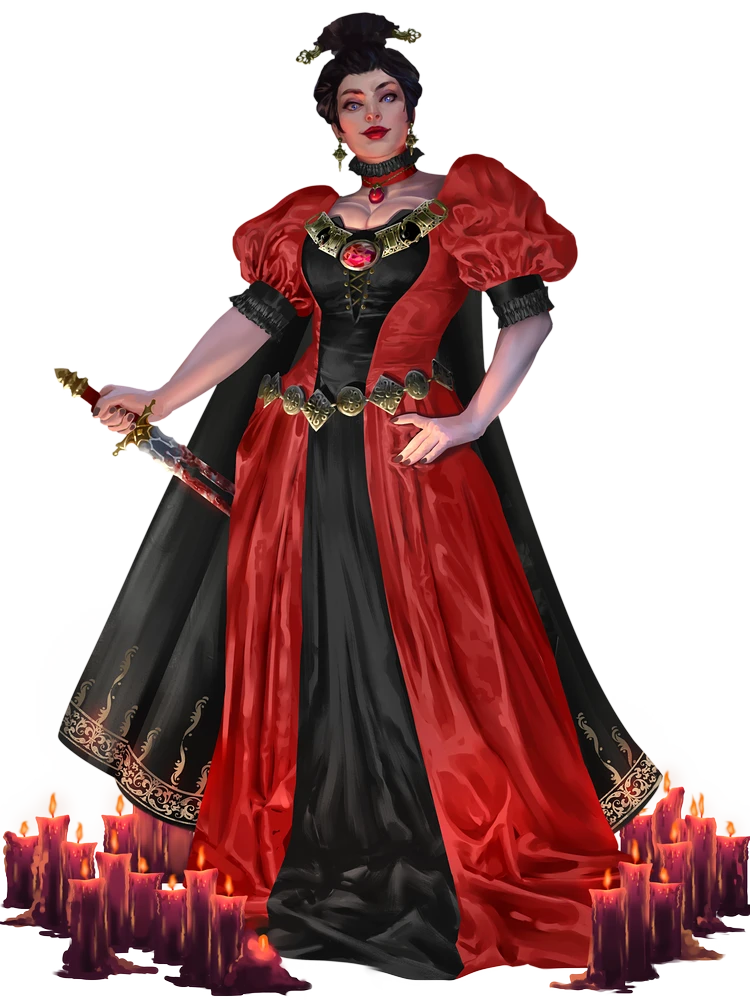 Queen Abrogail II: The ruler of Cheliax devotes herself to Asmodeus, and tyrannically rules her diabolic nation completely confident of the supremacy of herself and her country.