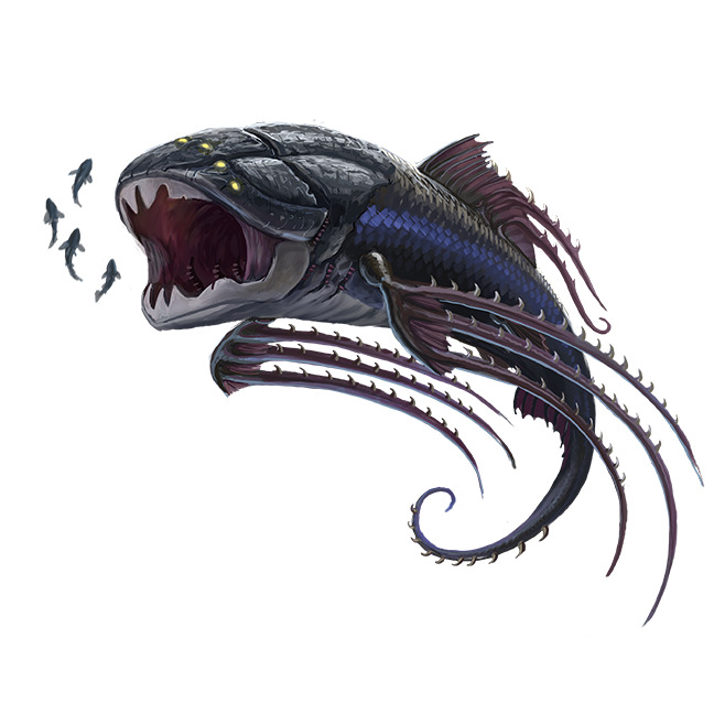 Strange things swim in sunless seas, but few as fierce as the shark-like dhuthorexes. These beasts chase prey fearlessly and tenaciously.