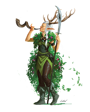 Each wild hunt follows a wild hunt monarch, who travels between the realm of the fey and the Material Plane in search of new quarry. These limber and regal humanoids have elk antlers, long pointed ears, flowing white hair, and luminescent green eyes.