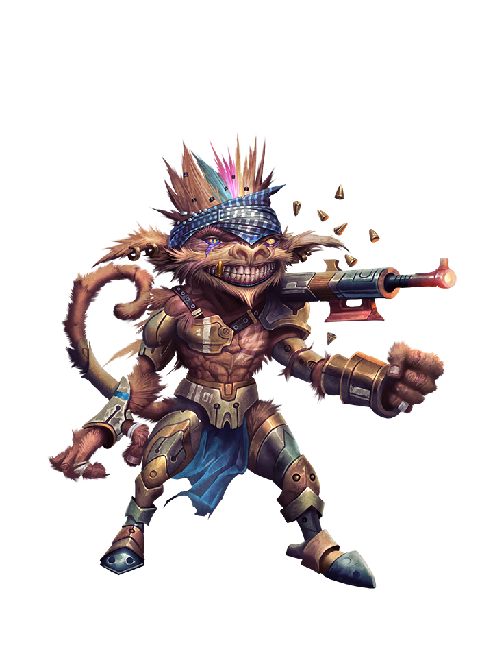 Nixbrix made his way to the Garundi continent with the intention of living for himself and no one else. Alkenstar sounded like the perfect place to do just that—a land with new technology and promises of a bright future. Furthermore, the region's frequent mana storms would stifle any divination spells his family might use to track him down. He felt like he'd just struck gold, a feeling reinforced by the metallic towers, auburn skies, and shiny brass clockworks that populated his new home. But after spending just a few days in the City of Smog, Nixbrix discovered that Alkenstar had just as many rules as his monkey goblin community, only he didn't know what they were. The immigrant's ignorance of the law didn't stop the shieldmarshals from trying to arrest him, though. Before Nixbrix knew what was what, he was on the run and scavenging to survive.