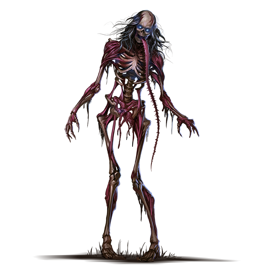 When a creature returns after death as a mohrg spawn, its flesh decays away save for its entrails, and it grows a long, awful tongue. The creature gains the undead trait and becomes chaotic evil, and it loses any abilities that come from it being a living creature. It gains darkvision, negative healing, and the mohrg's immunities and resistances. If the creature had hands, it gains a claw Strike (an unarmed attack that deals slashing damage). The creature also gains a tongue Strike, an agile attack that causes paralysis, as the mohrg ability; the Fortitude save uses the DC for the mohrg spawn's level. Mohrg spawn cannot create mohrg spawn of their own.