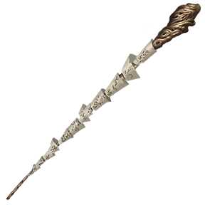 A librarian staff is a slender pole composed of thousands of coiled and compressed book pages swirling into one another, with a mishmash of letters tumbling across its surface. The sound of rustling pages can be heard when the staff moves.