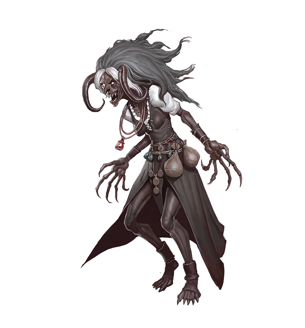Foul creatures who appear as wizened old women, hags share little in common with the humanoids they terrorize. They are hateful entities whose greatest joy lies in the corruption and ultimate destruction of anything good and virtuous. Whatever power created the first hags is lost to time, but numerous hag varieties have arisen over the ages, each with their own powers and abilities to spread pain and suffering.