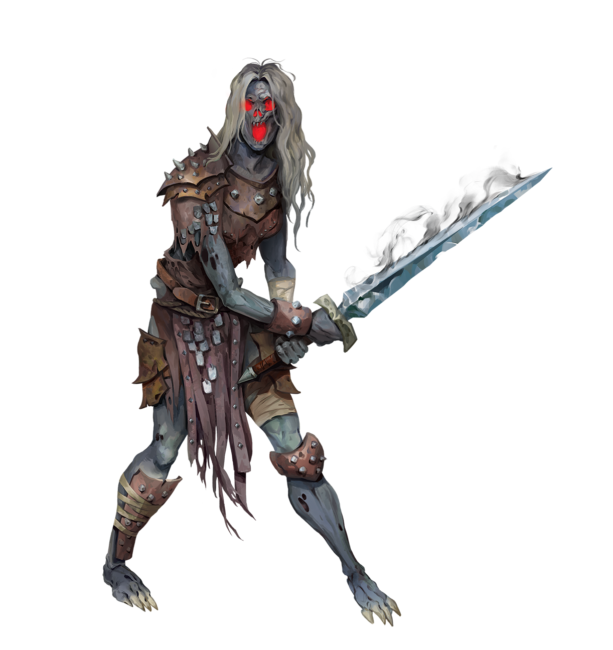 As many types of wights exist as types of people from which they might be created. Hulking brutes, skittering sneaks, and cunning tinkers all make for different wights with different niches to fill. Environment, too, plays a part in determining a wight's special abilities and defenses. Frost wights, for instances, can be found in the parts of the world where exposure is a common end. Regardless, wights typically haunt burial grounds, catacombs, or other places of the dead. But their hunger is targeted toward the living—those individuals who remind them of the shackles of mortality and whom they feel compelled to “free” to the state of undeath.