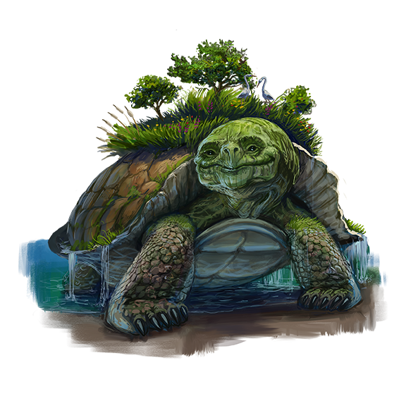 Spirit turtles are benevolent fey known to heal those in need and confer other powerful gifts. These gentle giants resemble enormous turtles and often bear entire ecosystems on their shells.