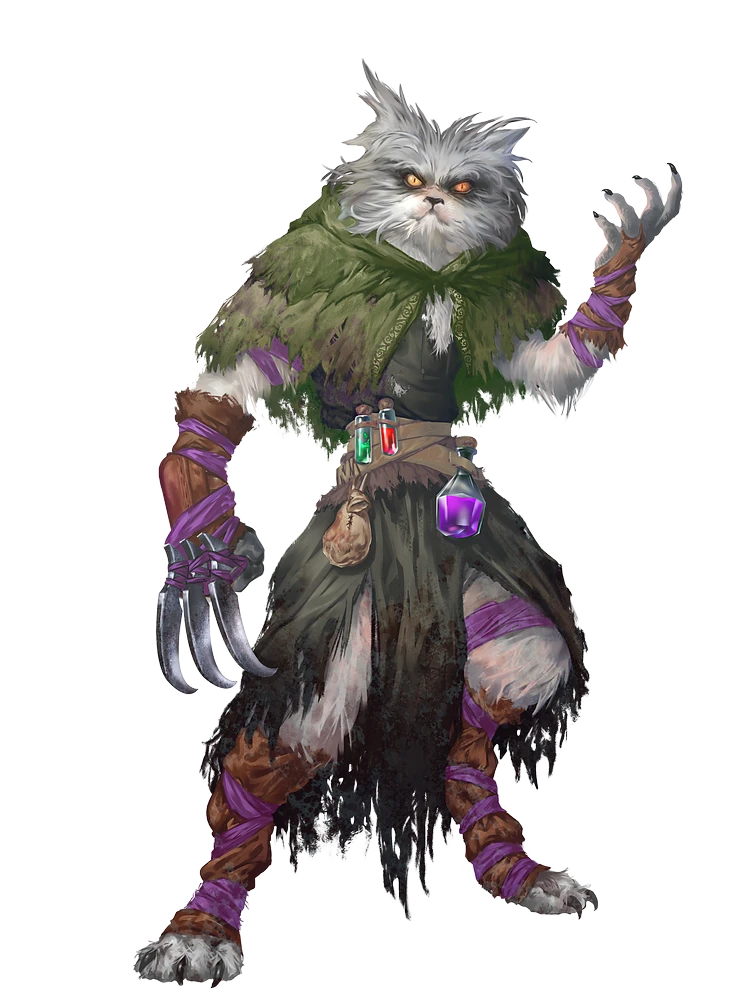 Cat's Luck [reaction] (fortune) Trigger Izurran fails or critically fails a Reflex saving throw; Frequency Once per day; Effect Izurran rerolls that saving throw and takes the better result.Spiteful Curse [reaction] (misfortune, occult) Trigger A creature within 30 feet that Izurran can see would succeed at a save; Frequency One per day; Effect Izurran hisses a spiteful curse at the triggering creature. The target must reroll the triggering saving throw and use the worse result.