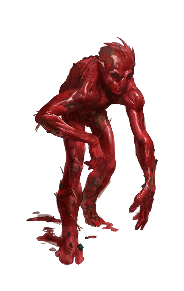 When a muckish creep's bloody mud is used as mortar in building construction, it sometimes creates a new muckish creep fused with the structure. Such a creature can move the entire building as if it were part of its own body. In the jungles and rainforests where muckish creeps are common, people often call upon clerics to bless their building materials, including the mud, in order to avoid unintentionally creating such a being.