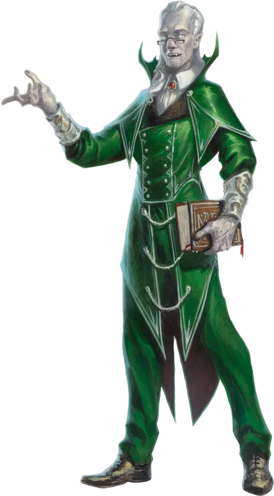 Despite being living creatures, dhampirs respond to vitality and void energy as if they were undead, making them unwelcome in many holy communities and often driving them toward necromantic arts. Dhampirs aren't immortal, but age far more slowly than most mortals, with a lifespan similar to that of an elf. Dhampirs have difficulty producing children of their own, and those few born to a dhampir are never dhampirs themselves. A dhampir generally resembles a member of their non-vampire parent's ancestry, but with a ghostly pallor and eyes so light it seems they have only pinpoint pupils and no iris. All dhampirs have elongated incisors, some nearly as long as those of a true vampire. Many command grace, beauty, and charm despite their unsettling appearance.