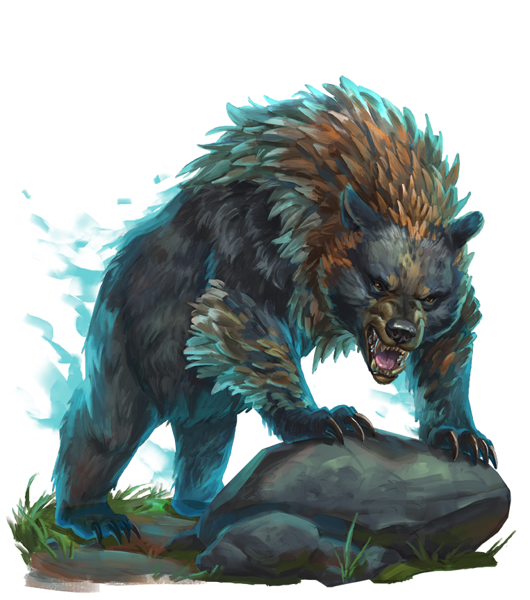 Born from spirits possessing the qualities of strength, endurance, and ferocity, these spirit guides act as martial guardians for mortals under their care. Most have a burning hatred for demons, devils, and other fiends who prey on mortal weaknesses. However, they also display care and consideration around mortal children, who in turn seem to instinctively recognize the beings as protectors. Strength takes many forms, some evident in their power—like the feathered bear—and some unassuming.