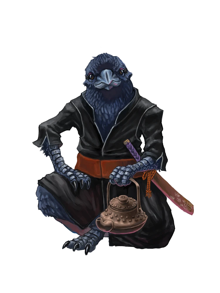 Tengu are an adaptable people originally from the continent of Tian Xia, but whose travels have taken them across all of Golarion. As a people in diaspora, tengu are almost always found within larger kingdoms and communities of other peoples, with the exception of their home nation of Kwanlai. As a result, tengu tend to gather in close-knit social groups both with other tengu as well as with other peoples of non-majority ancestries, collecting words and customs from other cultures the way a bird collects trinkets for its nest.