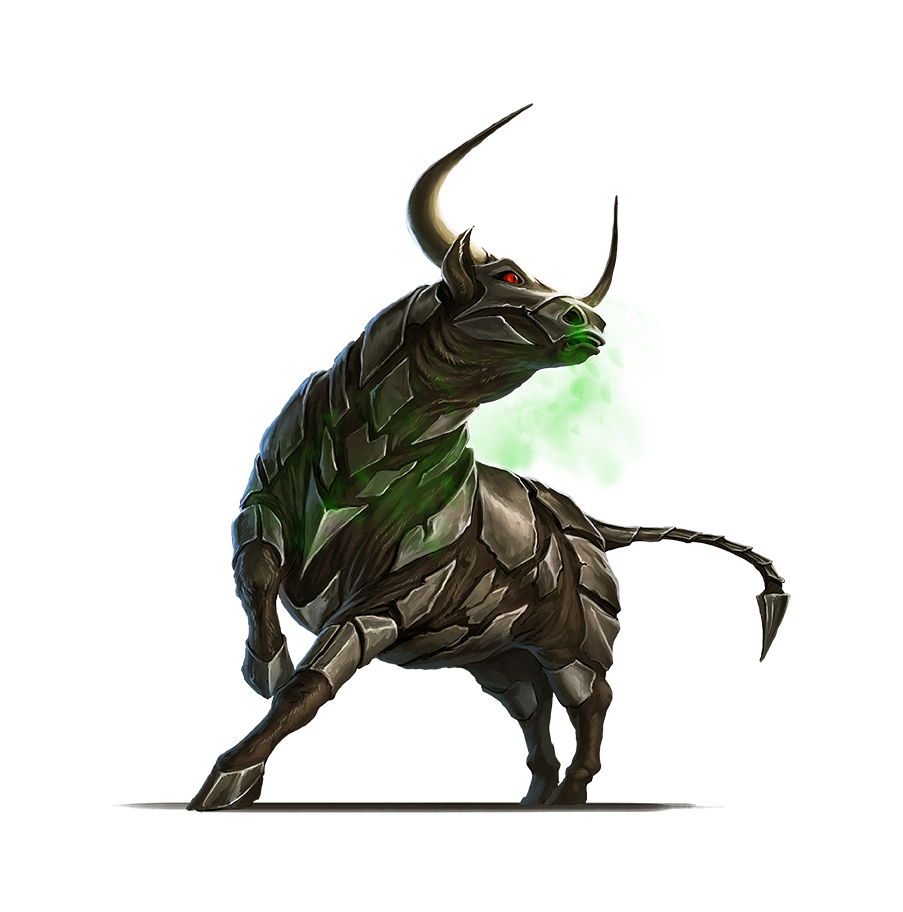 Though they may resemble constructs to the untrained eye due to their metallic, interlocking armor plates that look and feel like polished stone, gorgons are a creature of flesh and bone. These ill-tempered beasts greet interlopers with a charge or trample accompanied with belches of petrifying breath. Gorgons are dangerous on their own, and when they band together in herds, they become especially deadly.