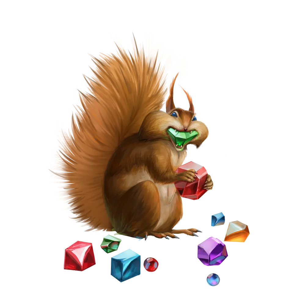 Taldan cave squirrels, also known as tauhotis, are a curious cousin of the much smaller common ground squirrel, found anywhere with large, grassy flatlands. The creatures burrow underground, forming cave systems tall enough for giants in astonishingly little time. Once the caves are excavated, the squirrels turn their attention toward the largest quantities of gems or metals they can find—including those in the ground floors and vaults of nearby buildings. Nothing is off-limits, and no effort is too large when these squirrels go gem hunting.