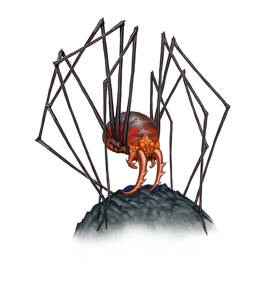 Beyond the two common types presented here, many other variants of longlegs can be found throughout Golarion, with the exception of its arctic regions, where longlegs don't thrive. They often live on the periphery of cities, lurking in sewers or ruins where the hunting is good. Swarms of sewer longlegs are particularly dangerous and infest the undercities of many Taldan settlements, while to the west in Cheliax, the much-larger executor longlegs prefer to live among the rooflines of slums where Thrune's rule has been particularly horrific. Among the largest of all longlegs, though, is the dreaded (and thankfully rare) treeleg harvester of the Mwangi Expanse.