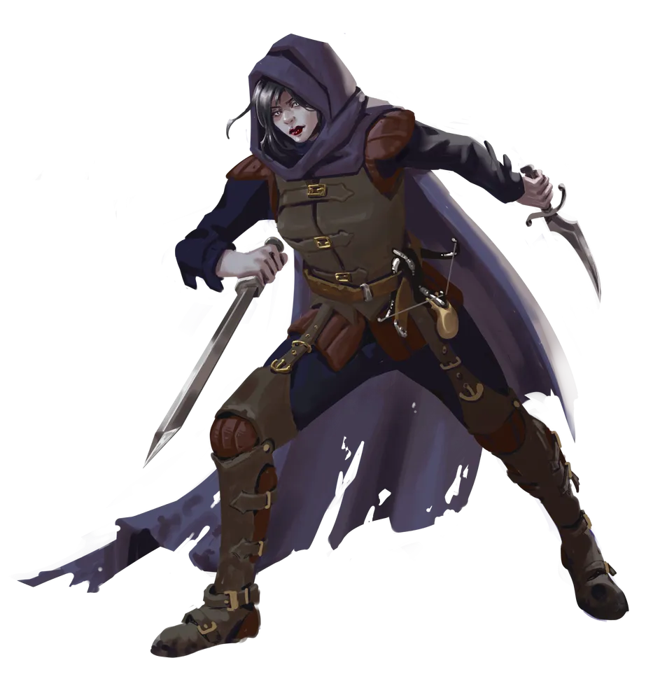 The mortal offspring of undead vampires are caught between life and undeath, mortality and immortality, mundane existence and powerful magic. Dhampirs enjoy long life spans and otherworldly charm, but their ghostly pallor and the nature of their parentage make their lives in humanoid societies difficult.Many call vampires the children of the night, but it's dhampirs who can truly claim that title. These mortal offspring of vampires walk the line between life and undeath not just physiologically, but also in their social standing, temperament, and worldview. The circumstances surrounding a dhampir's birth are rare, complex, and often shrouded in horrific rumors. Some dhampirs are the child of one mortal and one vampiric parent, while others are born to those who were turned into vampires while pregnant. Still others rise from occult rituals or other supernatural influences that impose a vampiric curse onto a mortal infant. The life of a dhampir is often difficult; few vampiric parents have the inclination to raise a mortal child, while mortal communities find a dhampir's sallow flesh, piercing eyes, and unnerving presence off-putting at best.