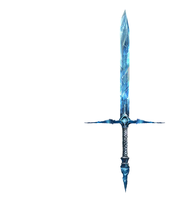 The blade of this +2 greater striking greater frost greatsword appears to be nothing but icy shards. The frost brand automatically extinguishes non-magical fires in a 20-foot emanation. While wielding it, you gain fire resistance 5.