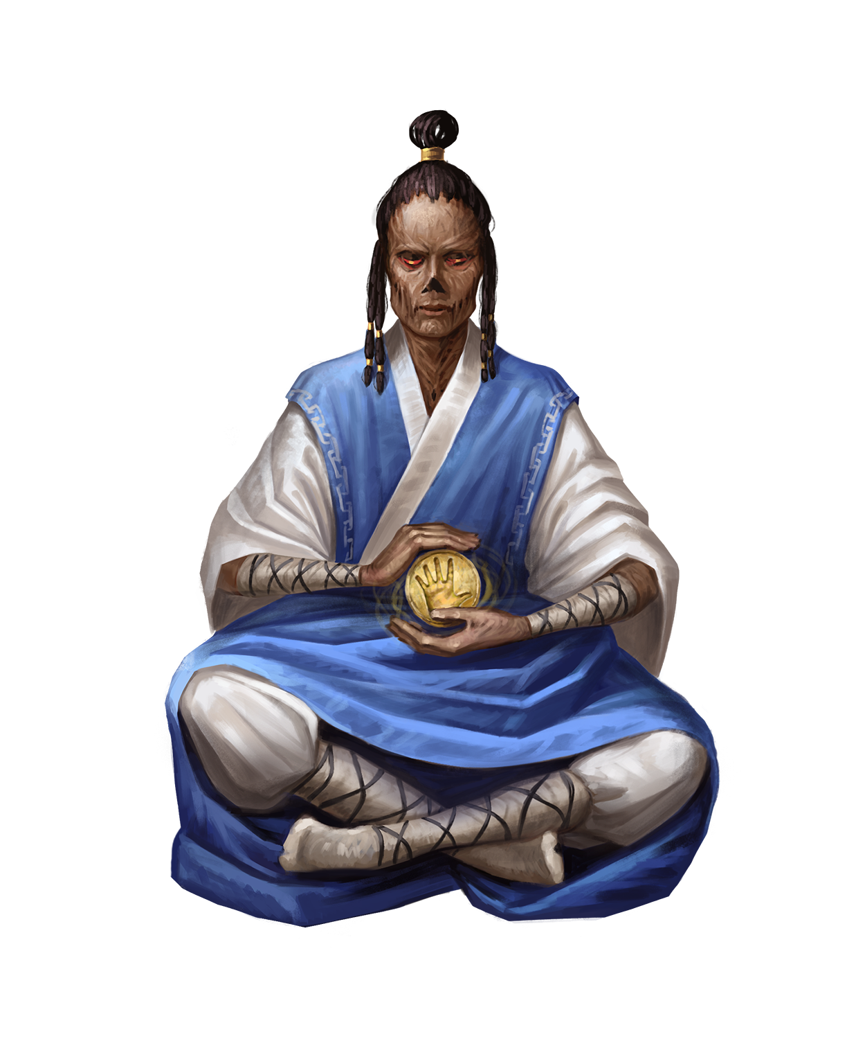 Some enlightened members of the Iroran faith, particularly monks, are so aware of their own bodily processes they can sense their approaching death from old age. Pinpointing the occurrence to the exact hour, a chosen few employ a method of self-mummification. These masters of life and death leave behind their bodies to watch over Irori's temples.