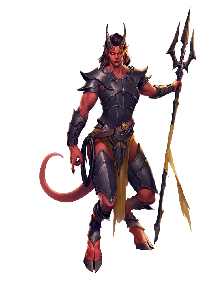 Masters of corruption and architects of conquest, devils seek both to tempt mortal life to join in their pursuit of all things profane and to spread tyranny throughout all worlds. The temptations they offer mortals range from great powers granted by the signing of an infernal contract to twisted favors following a whispered pledge to a diabolic patron, or any number of even subtler exchanges. Those who succumb to these temptations find themselves consigned to an afterlife of endless torment in the pits of Hell, wherein the only hope of escape lies in the chance of being promoted to become a devil in the infernal ranks.
