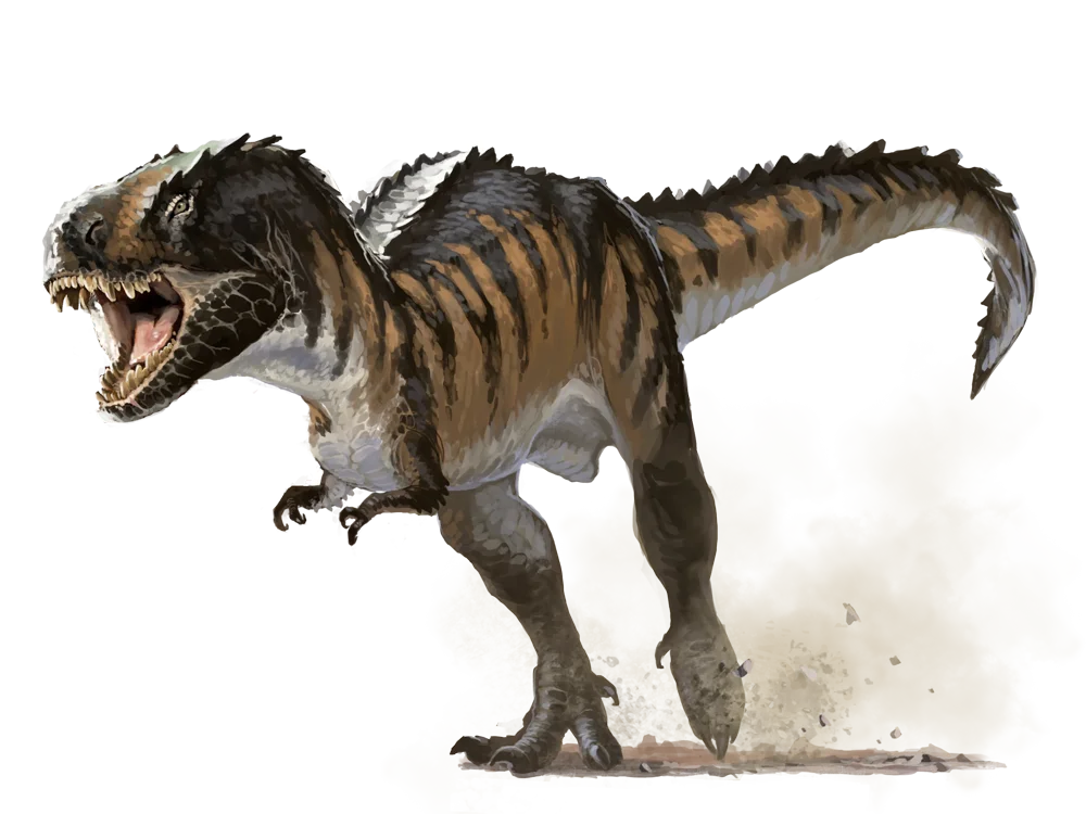 Widely regarded as the king of the dinosaurs, the tyrannosaurus is a massive predator with a wide mouth filled with viciously sharp teeth. Some tribes of giants have even trained tyrannosauruses as mounts or beasts of war.
