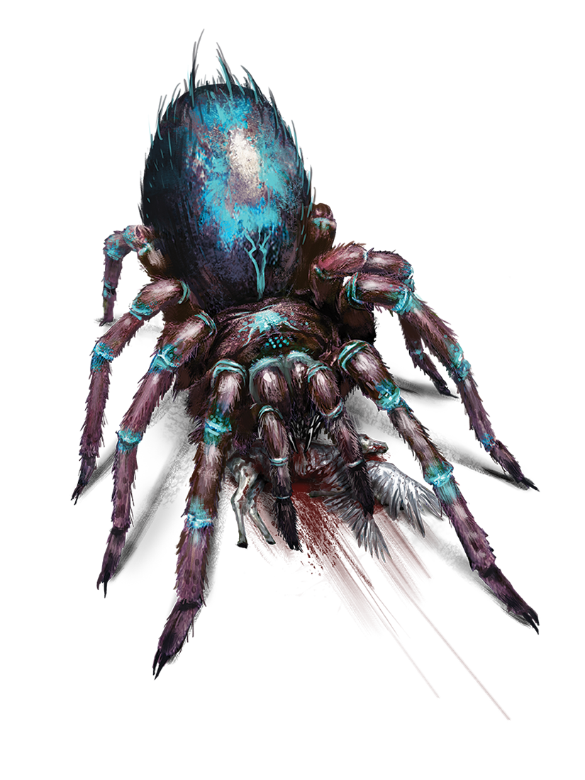 A staggering number of species of giant spider exist in the world. Some, like the dream spider, whose venom creates strange hallucinations, are relatively small. Others, like the lumbering ogre spider, are larger than horses.