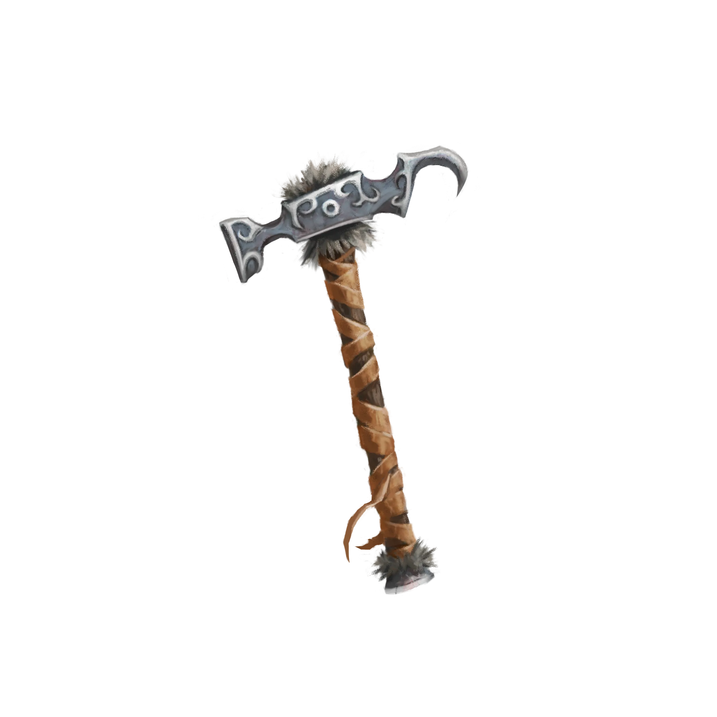 This gnome tool and weapon features a hammer at one end and a curved pick on the other. It's such a strange and awkward weapon that others think the gnomes are slightly erratic for using it.