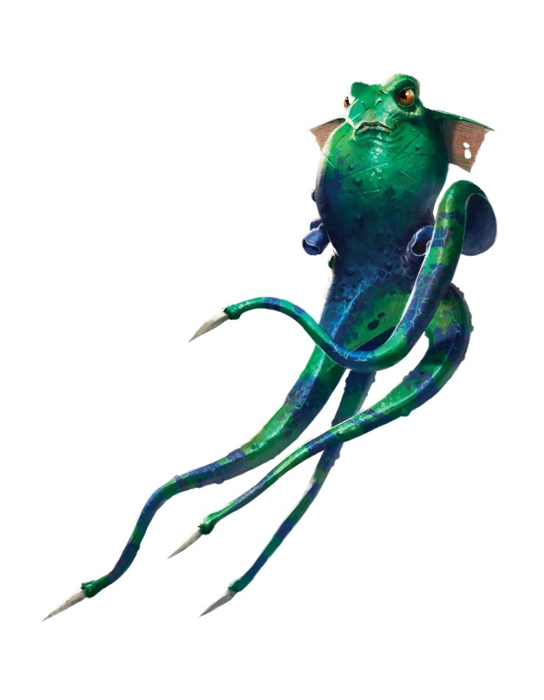 Quatoids are peculiar elementals native to the Plane of Water that resemble four-tentacled octopuses with eerily humanoid faces on their mantles. Mysterious even to other elementals, quatoids nevertheless respond to mortal summons. They assist these mortals in combat but seem to prefer offering calm advice, looking for alternate solutions even in the midst of bloody conflict.