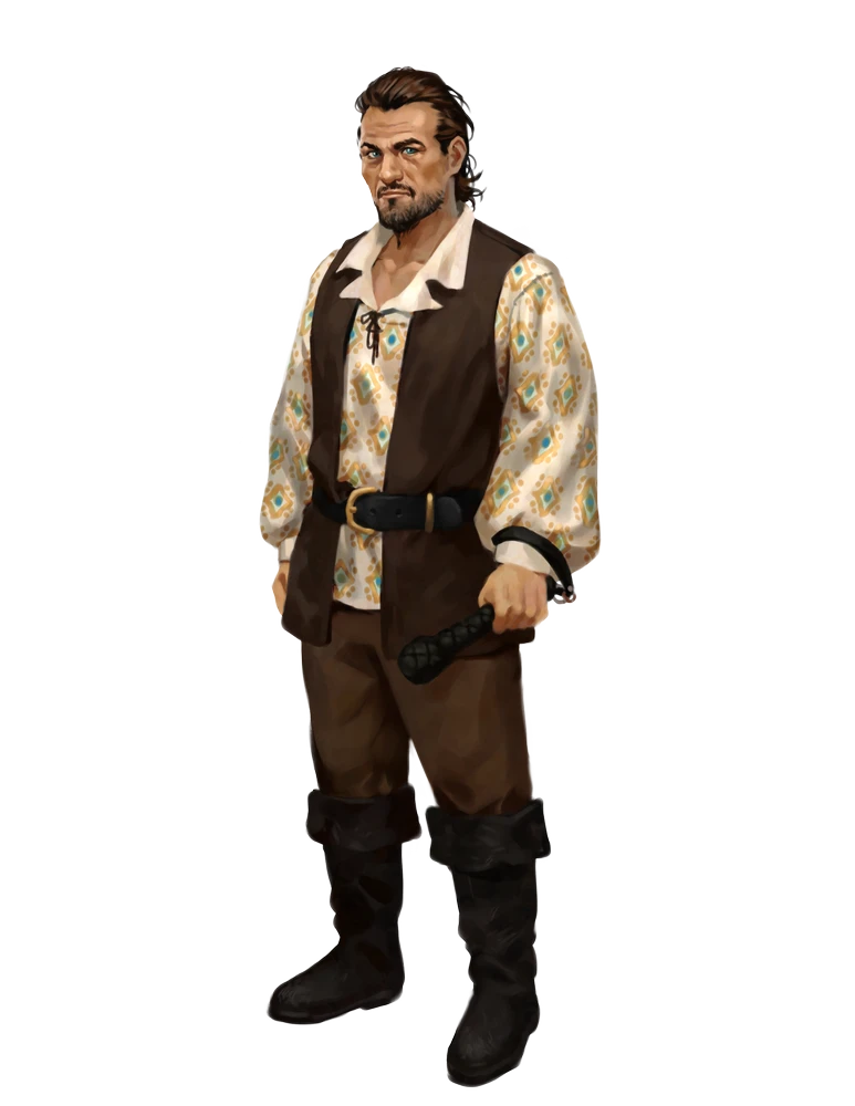 Melee [one-action] sap +6 [+2/-2] (agile, nonlethal), Damage 1d6+2 bludgeoningMelee [one-action] fist +6 [+2/-2] (agile, nonlethal, unarmed), Damage 1d4+2 bludgeoningScurry [one-action] The toady Strides, then can Hide. They can attempt to Hide from creatures without cover or being concealed, but at a –2 circumstance penalty.Throw Cargo [two-actions] A toady carries a heavy load of supplies at their boss's behest. They hurl a heavy item they're carrying, which explodes on impact to deal 1d10 bludgeoning damage to all creatures in a 5-foot burst with a DC 14 basic Reflex save.