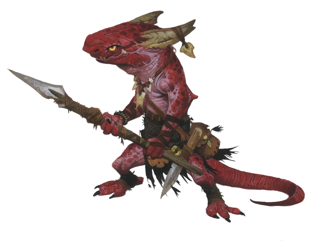 Kobolds are small reptilian humanoids. They lurk in dark spaces, usually tunnels and mines beneath the earth, in either warrens of their own design or complexes discovered and colonized after the original builders have moved on. Though kobolds are far more pragmatic than courageous, they use every inch of their cunning to even the playing field between themselves and other, stronger creatures. They attack from the darkness and at range, and kobold artificers and engineers master the art of simple but effective traps, which they use to protect their lairs. Kobolds are skilled at working together by necessity, and they often set up ambushes or hit-and-run assaults that allow them to do the most damage possible without being harmed in return.