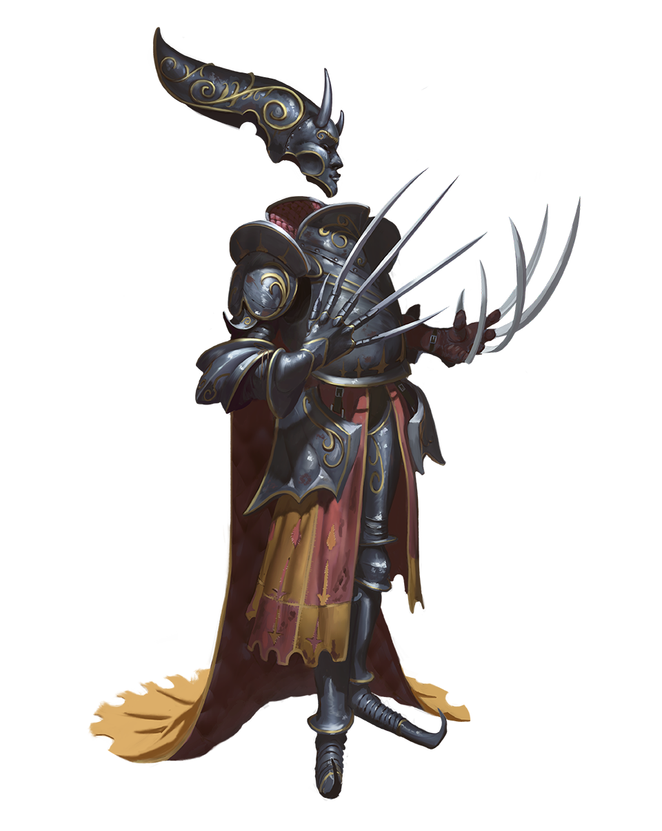 Masters of corruption and architects of conquest, devils seek both to tempt mortal life to join in their pursuit of all things profane and to spread tyranny throughout all worlds. The temptations they offer mortals range from great powers granted by the signing of an infernal contract to twisted favors following a whispered pledge to a diabolic patron, or any number of even subtler exchanges. Those who succumb to these temptations find themselves consigned to an afterlife of endless torment in the pits of Hell, wherein the only hope of escape lies in the chance of being promoted to become a devil in the infernal ranks. Every devil has a specific role to play in the upkeep of the remorseless bureaucratic machine that is Hell, from soldiers and scholars to inquisitors, lawyers, judges, and executioners. Lowly lemures and imps perform subservient labor to more powerful and specialized devils, such as contract devils and erinyes, while the greatest pit fiends command entire infernal armies.
