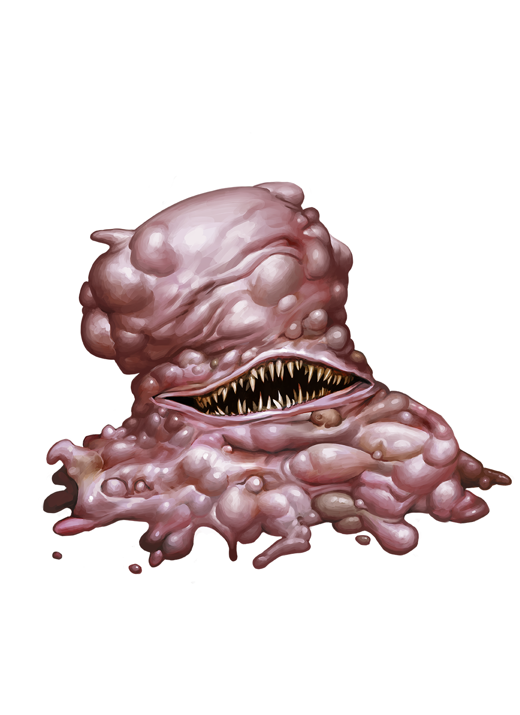 The tide washes ashore all manner of detritus, from harmless seaweed and shells to the rotting corpses of massive aquatic creatures. The globster is often mistaken for such, and this assumption isn't entirely incorrect—these mindless oozing masses are composed of decaying sea creatures, half-digested and merged into a revolting, reeking heap of blubbery sludge.