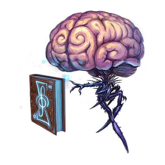 The ancestors of the Contemplatives of Ashok were humanoids of vast intellect who unlocked occult powers. They deliberately evolved their mental faculties at the expense of their physical forms, and their atrophied bodies dangle beneath giant brains.