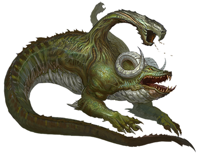Pugnacious and powerfully muscled, naunets serve as scouts and rank-and-file troops of protean armies. Resembling a thick salamander with a wide head, a powerful tail, and tentacles tipped with snapping jaws in place of rear legs, naunets are the most bestial of the proteans and occupy one of their lowest castes. Naunets are 12 feet long and weigh 900 pounds.