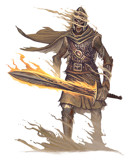 Dragonscarred dead are similar to skeletal champions or graveknights in that they are not merely reanimated servants who mindlessly follow orders, but are instead powerful wardens who maintain the same agency they bore in life. While a dragonscarred dead is often magically compelled to follow its reanimator’s commands, some of these undead dragonslayers manage to escape their masters and pursue their own vile agendas—which may involve rallying allies to challenge their draconic creator once more and finish the dire mission they started in life.