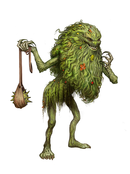 Melee [one-action] claw +14 [+10/+6] (agile), Damage 2d8+7 slashingRanged [one-action] sling +17 [+12/+7] (propulsive, range increment 50 feet), Damage 2d6+4 bludgeoningPrimal Innate Spells DC 25; 4th hallucinatory terrain, modify memory, sleep; 3rd wall of thorns; 2nd entangle (×3); Cantrips (4th) dancing lights, tanglefoot; Constant (4th) speak with plants