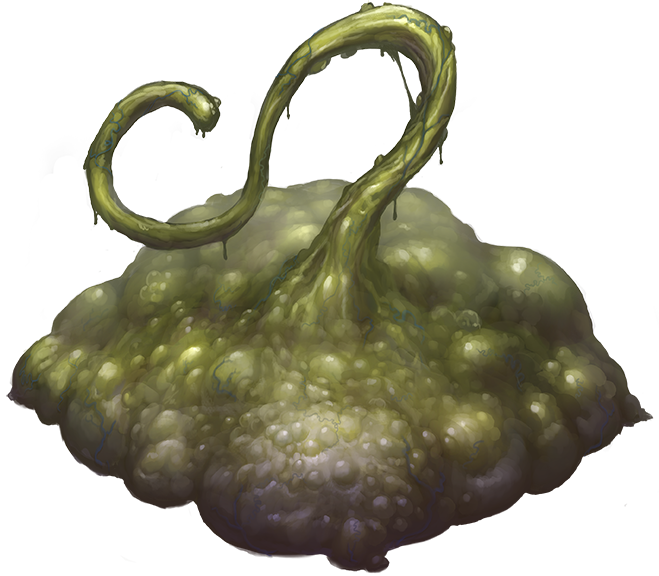 Slimes, molds, and other oozes can be found in dank dungeons and shadowed forests. While not necessarily evil, some grow to enormous sizes and have insatiable appetites.