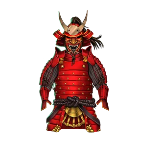 Larger plates coupled with lamellar pieces to make up a suit of heavy lamellar. The custom-fitted and often highly decorative suit covers most of the body. Rounding out the suit are a tiered helmet and fearsome mask, often depicting a fiendish or monstrous creature.