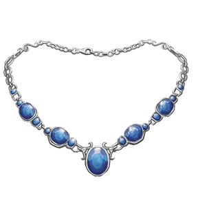 Blessed by Nivi Rhombodazzle, this striking silver necklace is adorned with sparkling sapphires that draw the eye of any who see it. Over the years, this necklace has appeared in many paintings and illustrations, usually around the neck of a carefree and daring adventurer or a stylish rake gambling vast sums of coin. Finding this relic is always seen as a sign of great fortune to come, but when that luck runs out, the necklace is lost just as quickly. Wearing the relic, you quickly realize how distracting it can be, granting you a +1 item bonus on Deception checks made to Feint and on Games Lore checks made to gamble or determine the outcome of a game of chance.