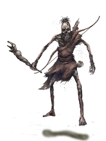 A baykok is the restless remnant of a warrior or hunter, cast out for evil acts and cursed to forever soar through the sky far from its home, unable to ever set foot on the ground again. The creature's despairing, lonely cries at night are audible for miles across the wilderness it haunts. Jealous rage drives it to hunt isolated humanoids, especially warriors and hunters who remind it of the life it once had and squandered. A baykok's invisible arrows carry its soul-freezing loneliness, and its envious touch can steal a helpless victim's vitality.