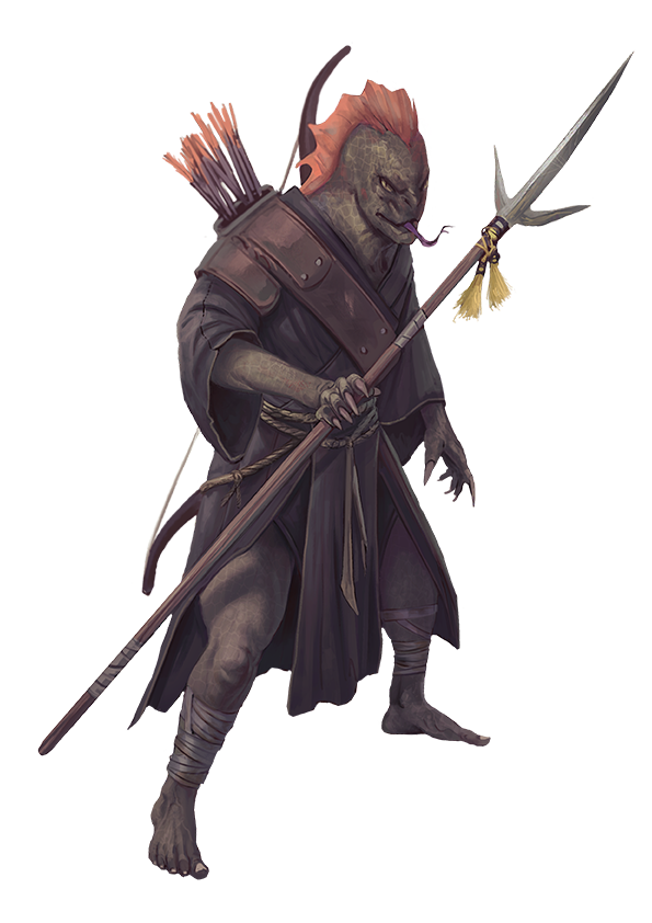 Nagaji physiology varies somewhat. Some possess vestigial tails, while others have sharp claws, and some even sport impressive fangs that can inject a simple venom. Like snakes, nagaji are cold-blooded and reproduce by laying eggs; as a result, nagaji territories rarely overlap with those of mammalian humanoids, since their environmental needs diverge so widely. They're a hardy and strong people, but their close ties to nagas mean many have the potential for powerful magic, as well.