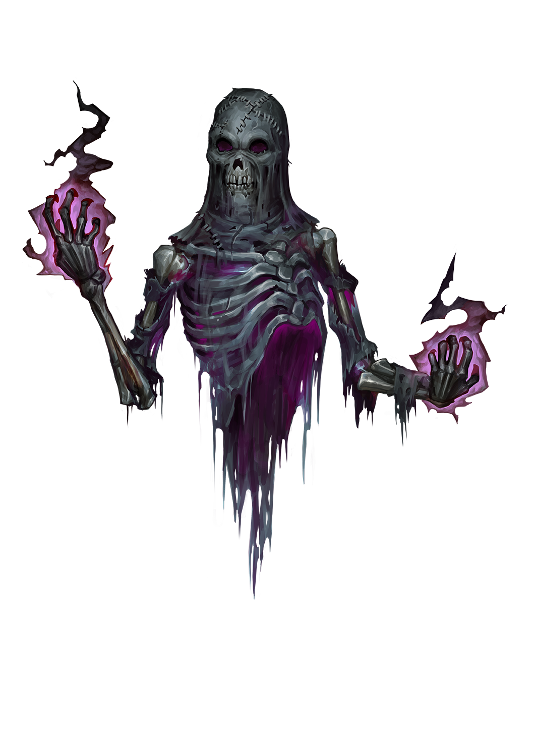 These ancient denizens of the Shadow Plane appear as grayish humanoid torsos covered in translucent funeral veils of shadow. Silent and mysterious, they float about, absent legs to hold them aloft. Never speaking a word aloud, they instead reach into the minds of creatures around them to whisper and mumble curses, threats, and strange bits of forlorn augury.