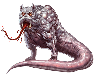 Among the least of the sahkils, esipils delight in spreading fears and uncertainty among people who live with animals that could turn on them. They generally appear to their prey as some benign creature such as a domesticated dog or cat, but once they gain trust and get their victims close, they transform into a terrifying creature that looks part dog and part worm with tendrils of viscera that the creature uses as both a tongue and a weapon.
