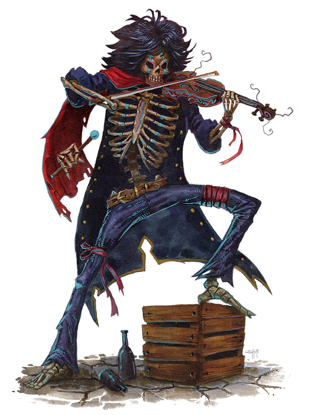 To some, music is more than a hobby—it's an obsession. Every musician who lived and died for their craft runs the risk of returning as a fiddling bones, as do musicians who died before completing their magnum opus or receiving the accolades they believe they deserved. Driven to prove themselves even in undeath, fiddling bones often challenge famous performers to music duels.