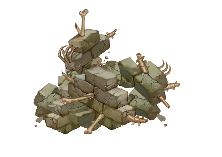 Cobblebones form most commonly in the ossuary-city of Graydirge. While solid stone provides for sturdier construction, Graydirge's builders accentuate their projects using bones—both to send a message, and simply because they can. The accidental creation of tormented cobblebones often delights the builders, who see it as fitting punishment for betraying Geb.