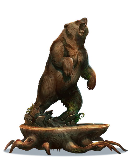 Melee [one-action] statue +15 [+10/+5] (shove), Damage 2d8+5 (3d8+5 while Dug In) bludgeoning plus KnockdownMelee [one-action] roots +17 [+12/+7] (finesse, trip), Damage 2d8+5 bludgeoningDig In [one-action] The carved beast digs its roots into the ground for better protection and purchase. While Dug In, the carved beast can't Stride nor use its roots Strike; however, this also negates the effects of top-heavy, grants the beast a +2 status bonus to its AC and Fortitude saves, and increases the damage of its statue Strike by 1d8. The carved beast can spend an action on its turn to end the effect; alternatively, the effect ends when the carved beast is moved by force, such as via a successful Shove attack.