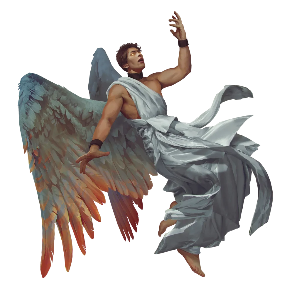 The celestial hosts of angels are messengers and warriors, divided into choirs based on their abilities and purviews. Angels were one of the first creations of the gods, and many still assist their righteous creators throughout the cosmos. Most angels in modern times are not direct creations of the divine, however, instead consisting of ascended mortal souls drawn from the celestial planes.