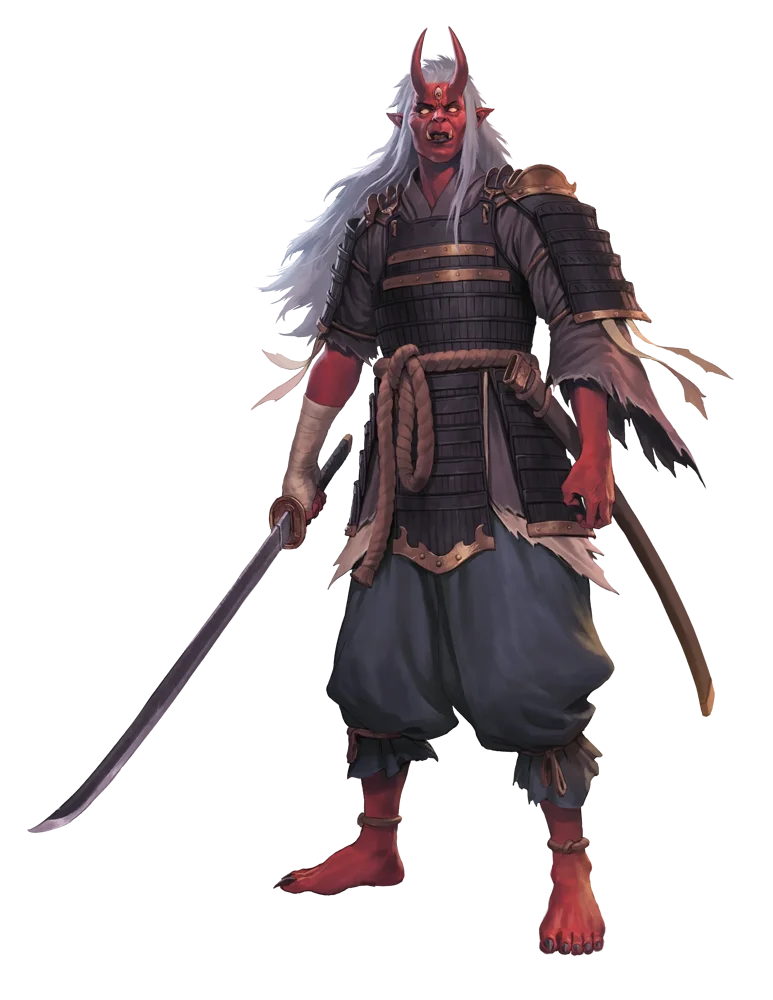 Oni possess the ability to disguise themselves as other humanoids. They are rarely creative in their disguises, often choosing a specific appearance similar to their oni form and sticking with it. This simplicity catches many by surprise, however, as people assume oni are limited to a single alternate form, which is by no means the case.