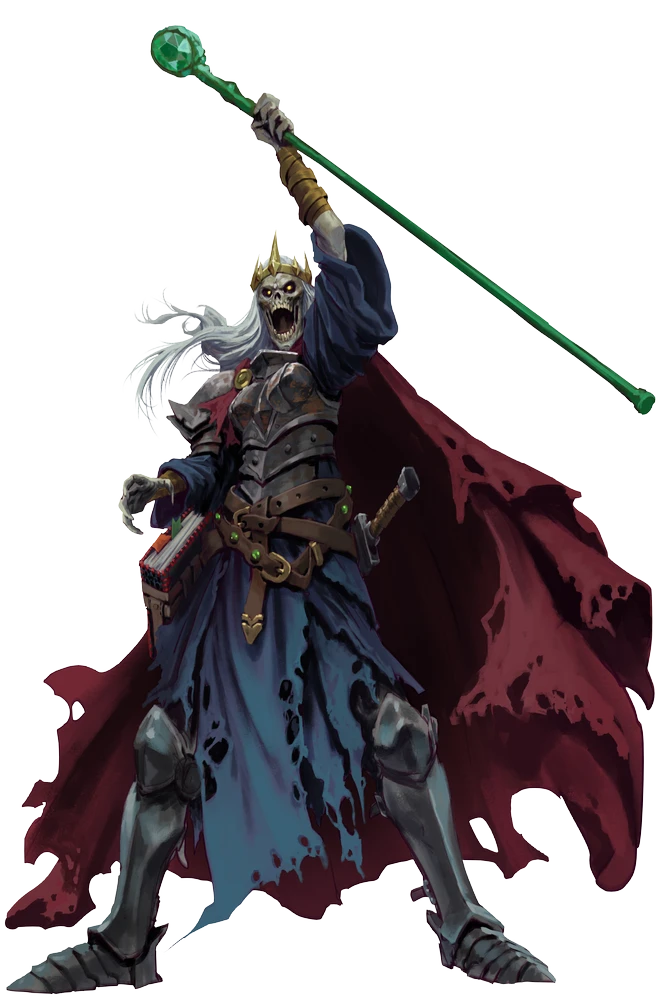 A mythic lich could be a lich who came into contact with a source of mythic power after their transformation—or one whose transformation was designed to instill mythic power in them. Such rituals might entail using a mythic artifact as a soul cage, slaying a mythic creature, or luring a mythic being into striking the killing blow against the spellcaster. Among adherents of the Whispering Way, it is commonly believed that the Whispering Tyrant tricked the god Aroden into killing him as a mortal so he could siphon some of Aroden's power into creating his soul cage and allowing him to become a mythic lich.