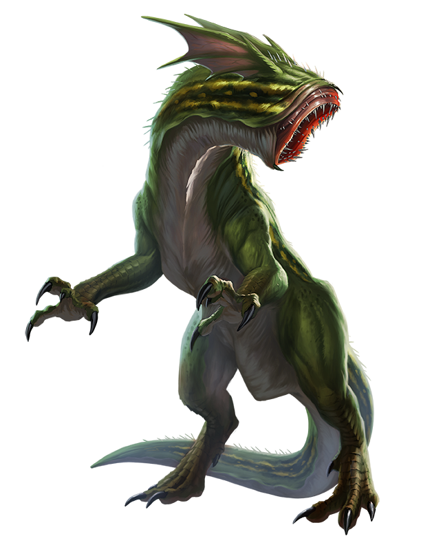 This underground reptilian horror walks on two powerful hind legs. Its forelimbs are armed with sharp curving claws, and its toothy, eyeless, tubular head has three hypersensitive frilled ears that turn toward any sound made in its vicinity. This cruel monster's true weapon, however, is an amplified version of the sonic cry that it uses to navigate, communicate, and hunt. It communicates with others of its kind through a complex series of clicks, shrieks, and whistles, but it is intelligent enough to understand other languages. Most destrachans understand at least one other language—usually Undercommon—and can often be reasoned with.