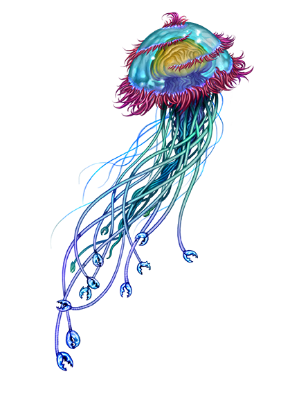 The expansive skies of the First World are home to skrik nettles—delicate, bizarre-looking creatures that resemble large jellyfishes. A fringe of brightly colored feathers circles their bodies, and long tendrils trail from their center, each ending in a snapping beak. Known for their eerie, chirping melodies, skrik nettles soar above the First World in flocks of a dozen or more, diligently scavenging for food in the fey realm's cutthroat ecosystem. When hunting or provoked, skrik nettles attack their foes by injecting them with a magical poison that causes the victim to float helplessly up into the sky. Skrik nettles continuously inject this poison into their helpless prey until it dies or is so high up that the skrik nettle needs only wait for the poison to end, its meal crashing helplessly to the ground below.